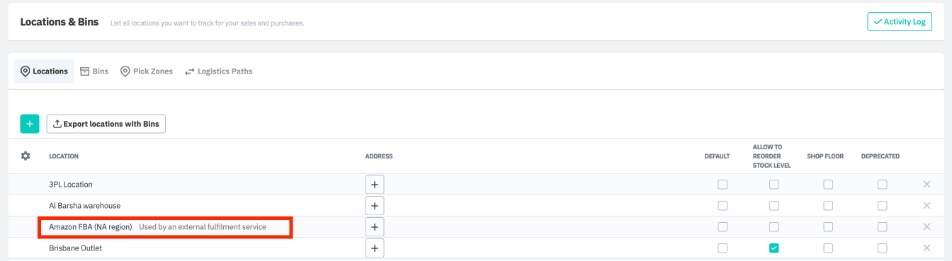 If Create a new location was selected during setup, a new location with the name of the FBA account will be created within Cin7 Core, which will then try to match the created location with an existing Cin7 Core location of the same name. If the Cin7 Core location contains bins, a new location will be created and named using the following convention: FBA account name + a numerical suffix.