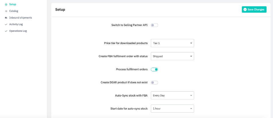 The Amazon FBA integration allows some options to be customized. These are found by navigating to Integrations → FBA and then selecting your Amazon connection, on the Setup tab.