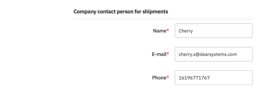 On the Setup tab, you can set contact details for the company contact person for inbound shipments. We do not currently support Inbound shipments.