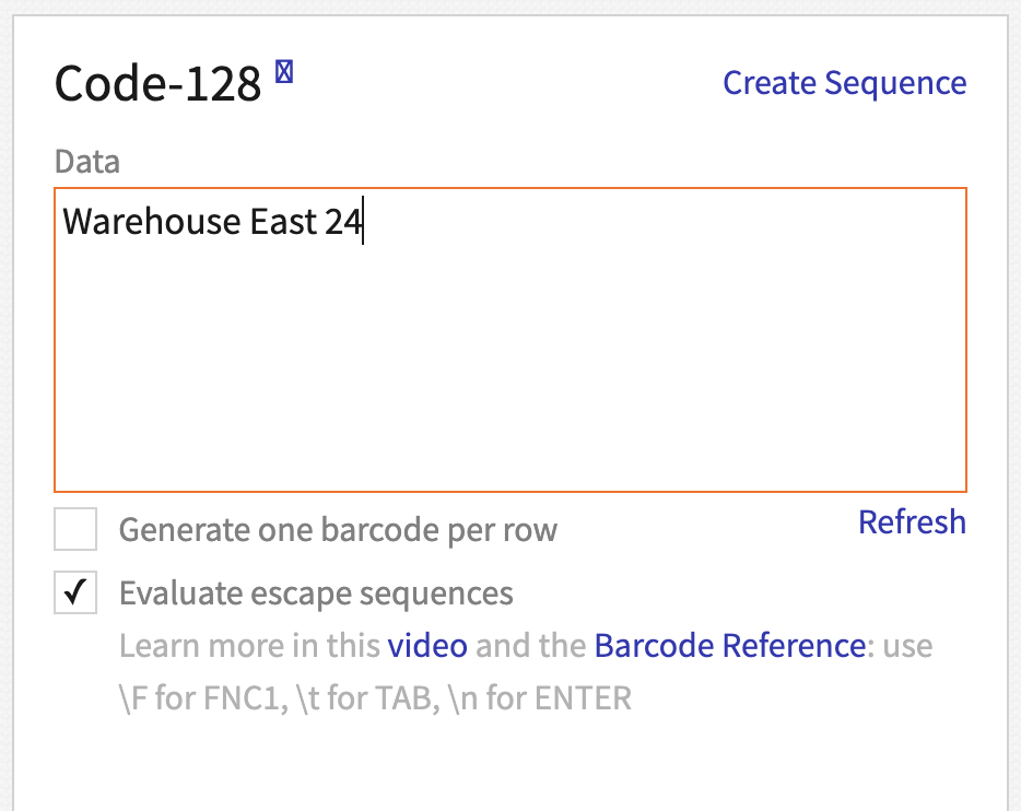 With a barcode generator, you can enter a location name and generate a barcode sequence for it:
