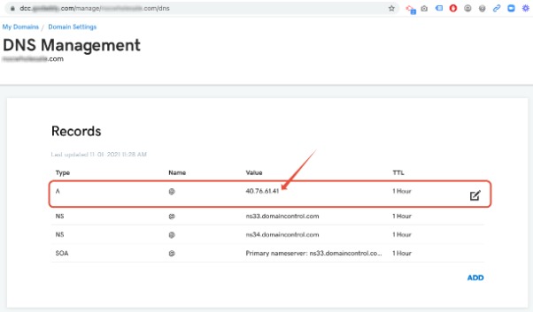 For the first level domain, it should point to 20.25.113.39
