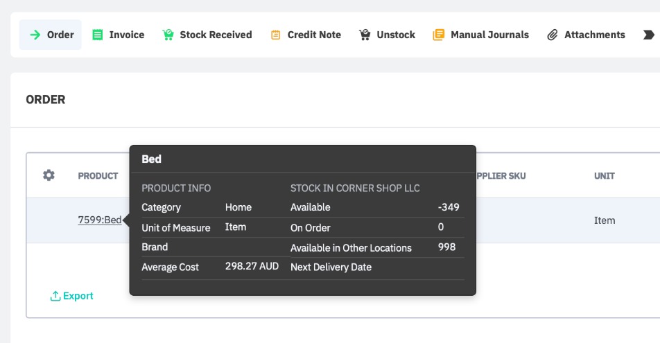 Cin7 Core is configured to display these hyperlinked records by default, though you can disable them if desired (see General settings for more info).
