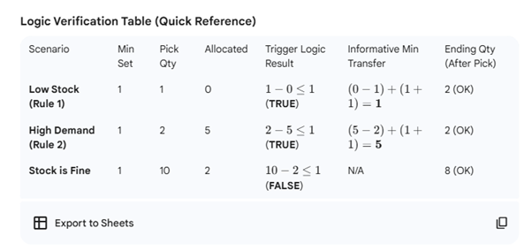 Safety Logic Note: If the calculation for Min Transfer results in a number less than 0 (which can happen if a user manually tops up a bin just before the report is run), the WMS should display 0 as the informative quantity.
