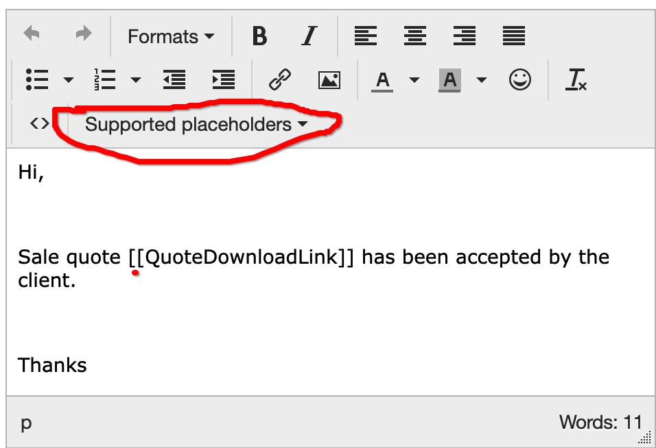Placeholder 'quote number' missing in workflow when quote is accepted by client