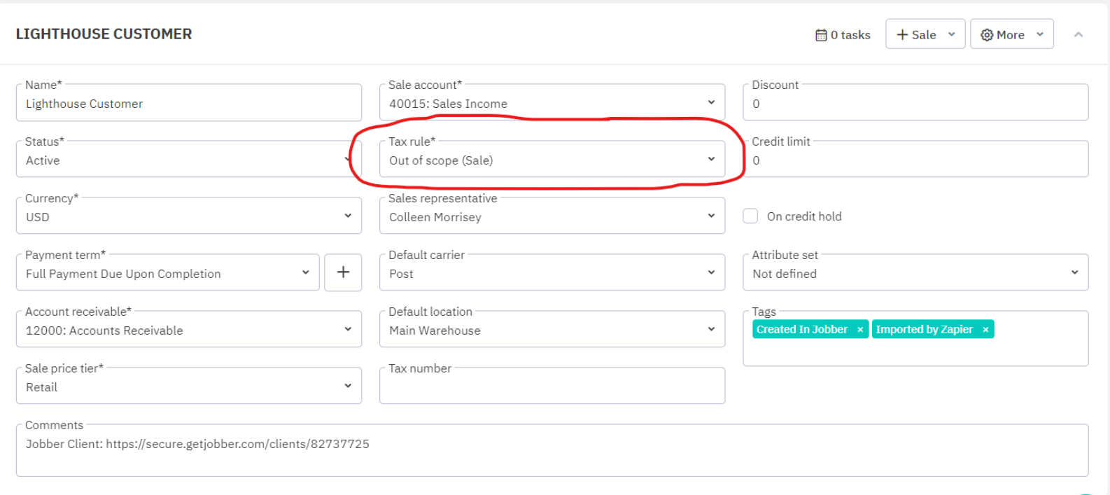 Here, you will see that Lighthouse Marine's Tax rule is out of scope, meaning it should always be 0% tax for this customer, but as you can see from the invoice the system created, it is still adding tax to the line item based on the product tax. This feature has no functionality, even though it looks like it does.