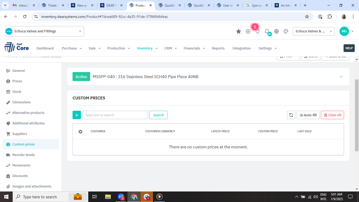 Cin7 Core account name - Echuca Valves & Fittings Pty Ltd
