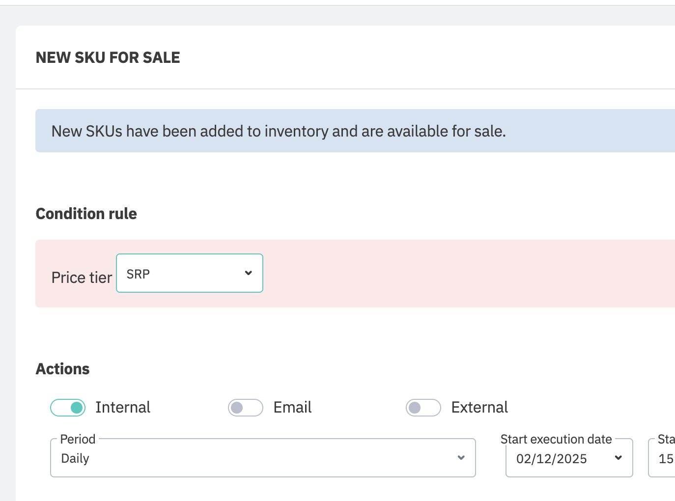 New SKU for Sale notification that is not have the pricing tier condition