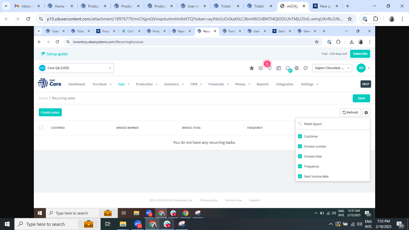 Recurring Sales list view