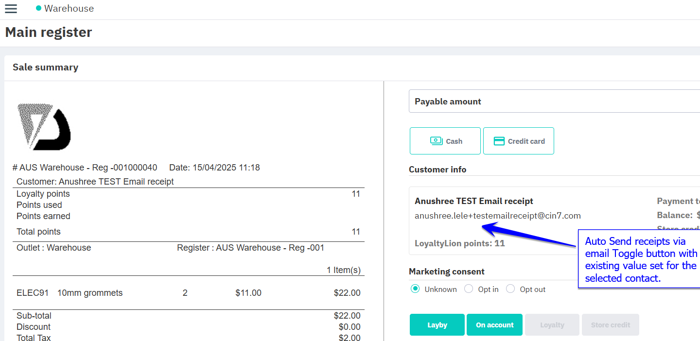 POS email receipts are now sent automatically by default and can be overridden on the customer record in the POS app.