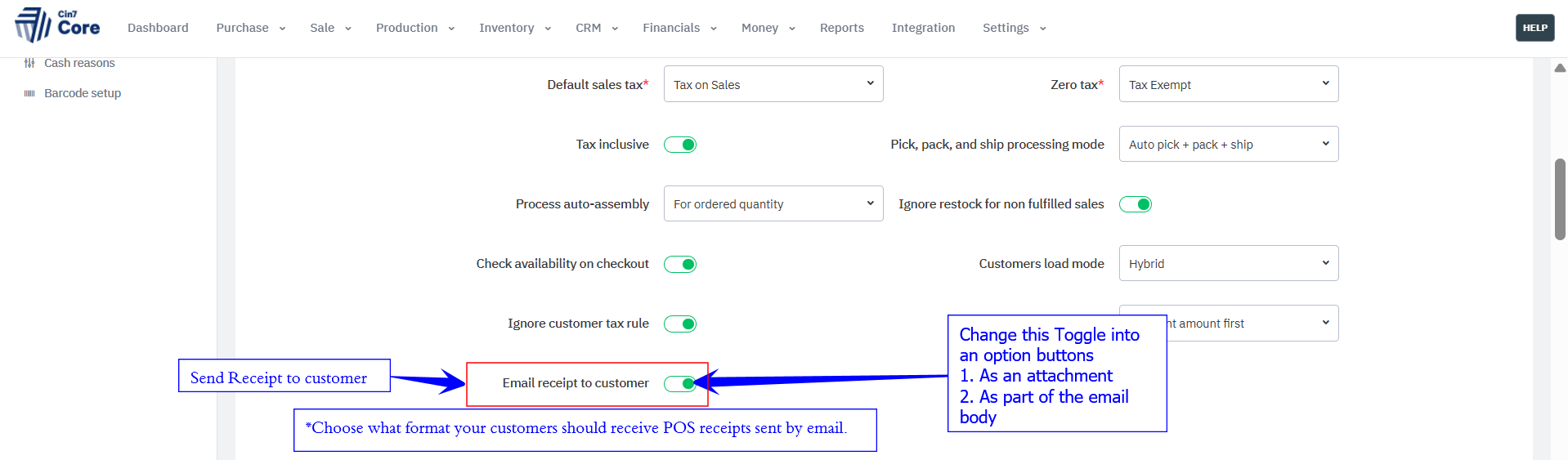 - Be able to mass change/update the POS customer receipts via email toggle.