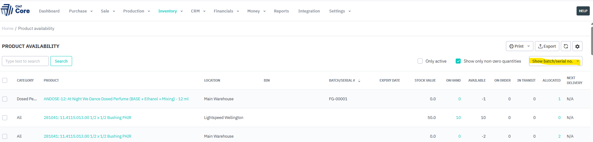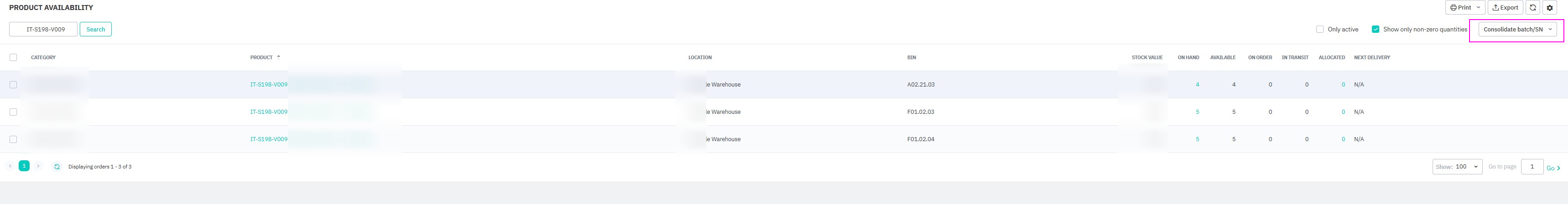 - When stock of the same product and same batch, is split over various bin locations, the availability report DOES NOT consolidate a single SKU onto a single line, even if you use the drop down filter option and turn off batch/bin location etc. I won't go through this issue again, but I clearly explained the issue in a different feature request here