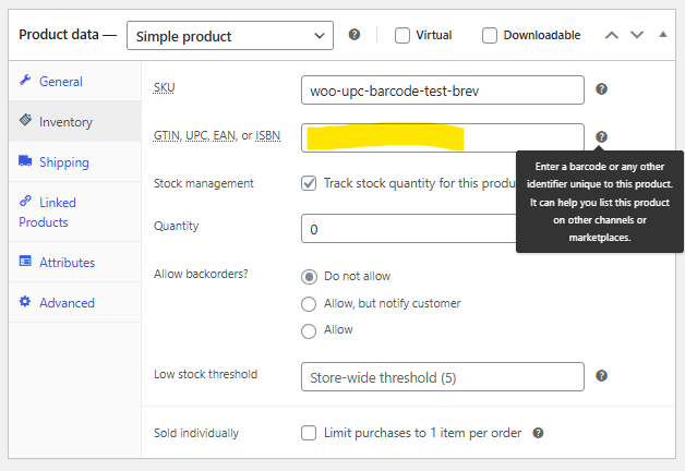 Mapping the "Barcode" field of the product to the "UPC" field of the product on WooCommerce
