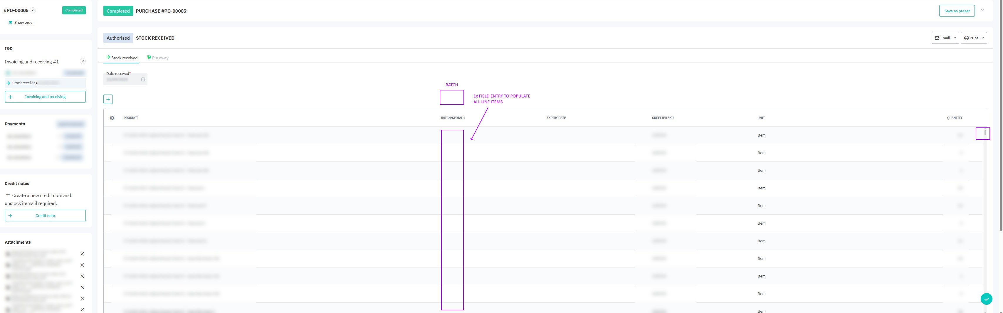 Feature Request - Purchase Orders - A single batch field which populates all line items