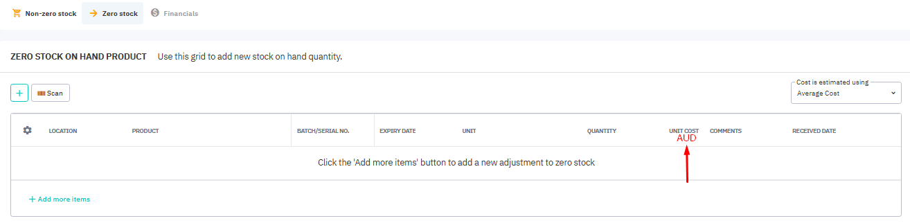 While mostly it is when entering the unit cost under the zero stock tab for a stock adjustments or stocktake, we believe it will be generally cautionary to visibly see these fields show the base currency in the heading.