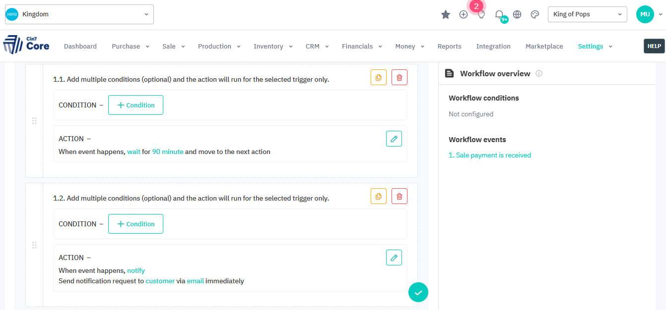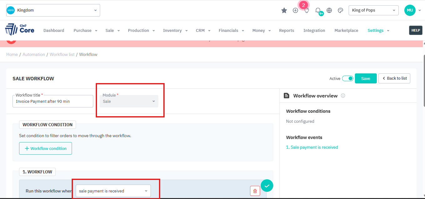 They have a workflow called “Invoice Payment after 90 min” that triggers an email to the customer when a payment is received against an invoice. This automation works for regular sales but not service sales. We need to implement a workflow to send the customer a received payment notification on a service sale as well as a regular sale.